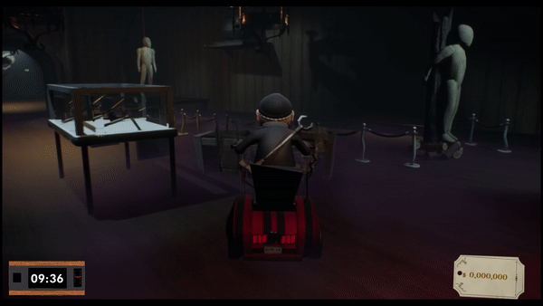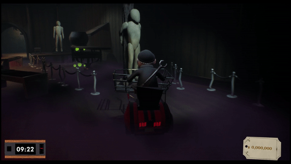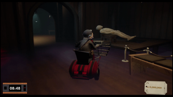 Join the heist! Plays as the Silver Fox, who was once an infamous thief, but is now just an old man on a scooter trying to rob the art museum at night. This modified scooter has simple and straightforward controls and can throw items inside its basket in a beautiful trajectory, but its movement is hard to master. Explore the Straten Museum of Artifacts and Discoveries (SMAD), which was famous for its valuable artworks from multiple cultures; Or adventuring the National Exhibition of Cryptids and Rare Oddities (NECRO), famous for its horrifying yet fascinating artworks inspired by myths and stories. Avoid being scanned by security cameras and drones, and try to collect as much art as the scooter basket can carry, but it can’t carry them all, so choose wisely for each artwork with various sizes and values, and bring them to deposit into your escape van for profit! But remember, if the timer runs out you will get caught, and you will lose no matter how much value is collected, so watch for the time!