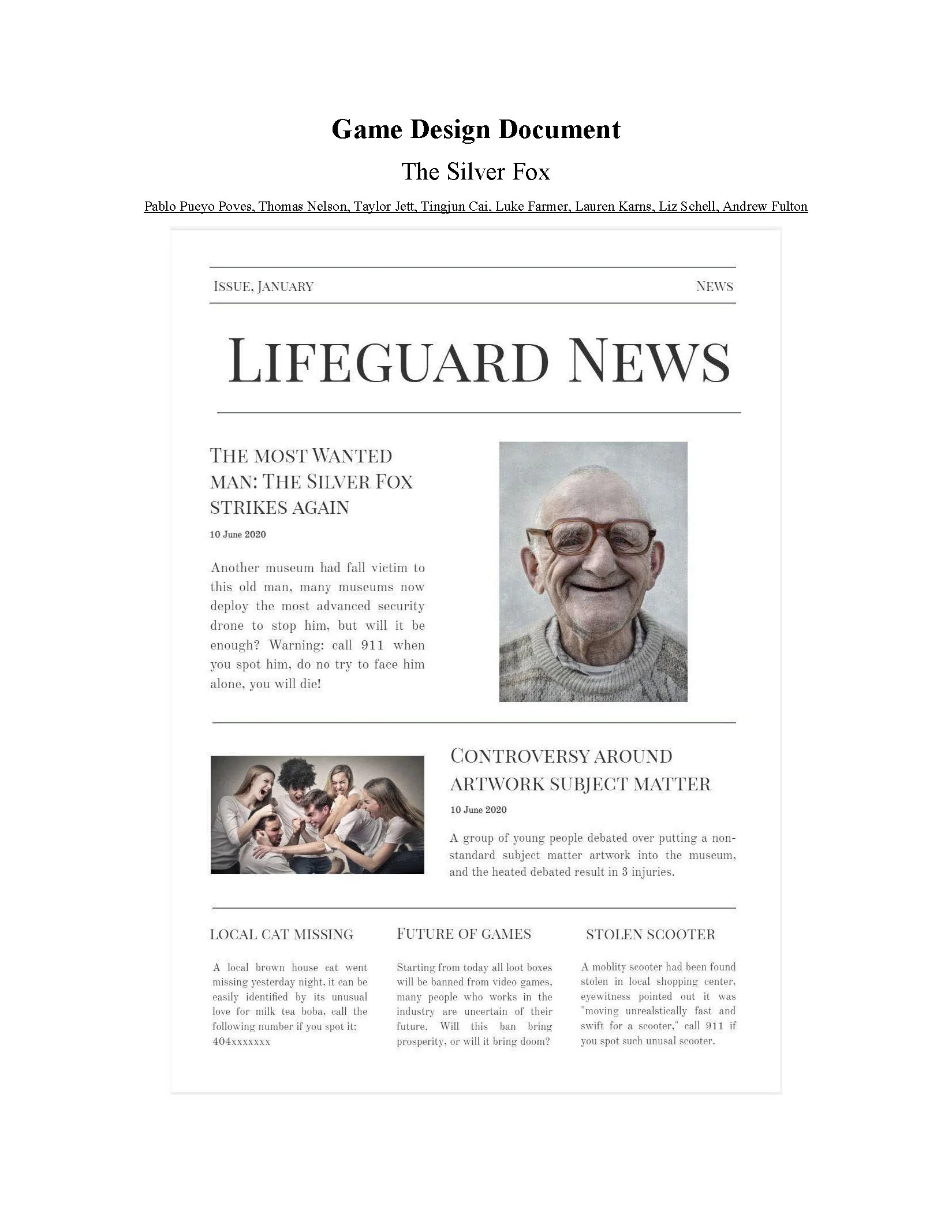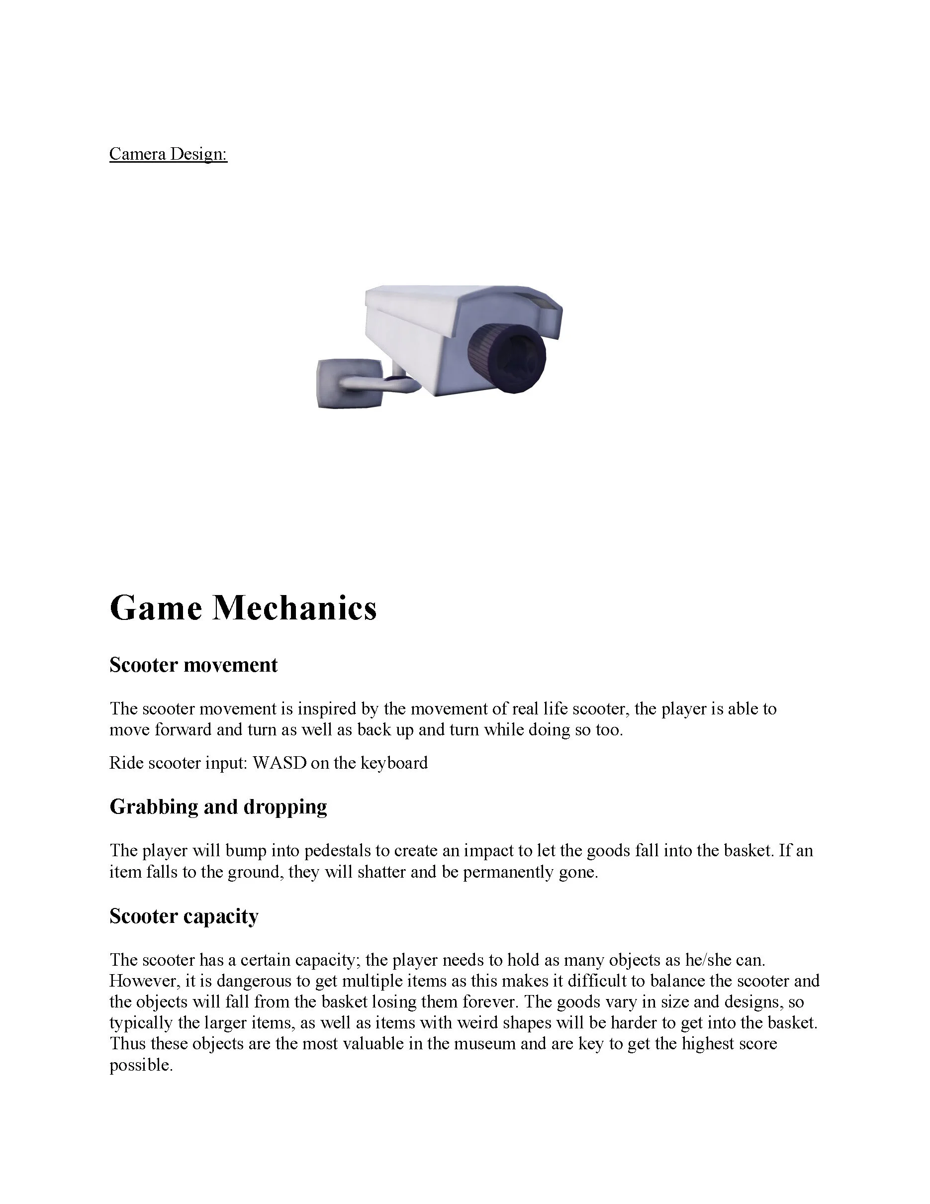 The Silver Fox is a third-person puzzle game, the player will play as an old thief, driving his mobility scooter to steal artworks in museums, and their goal is to get a high score before the timer runs out. My role for this game is to design and program the game mechanics and levels.